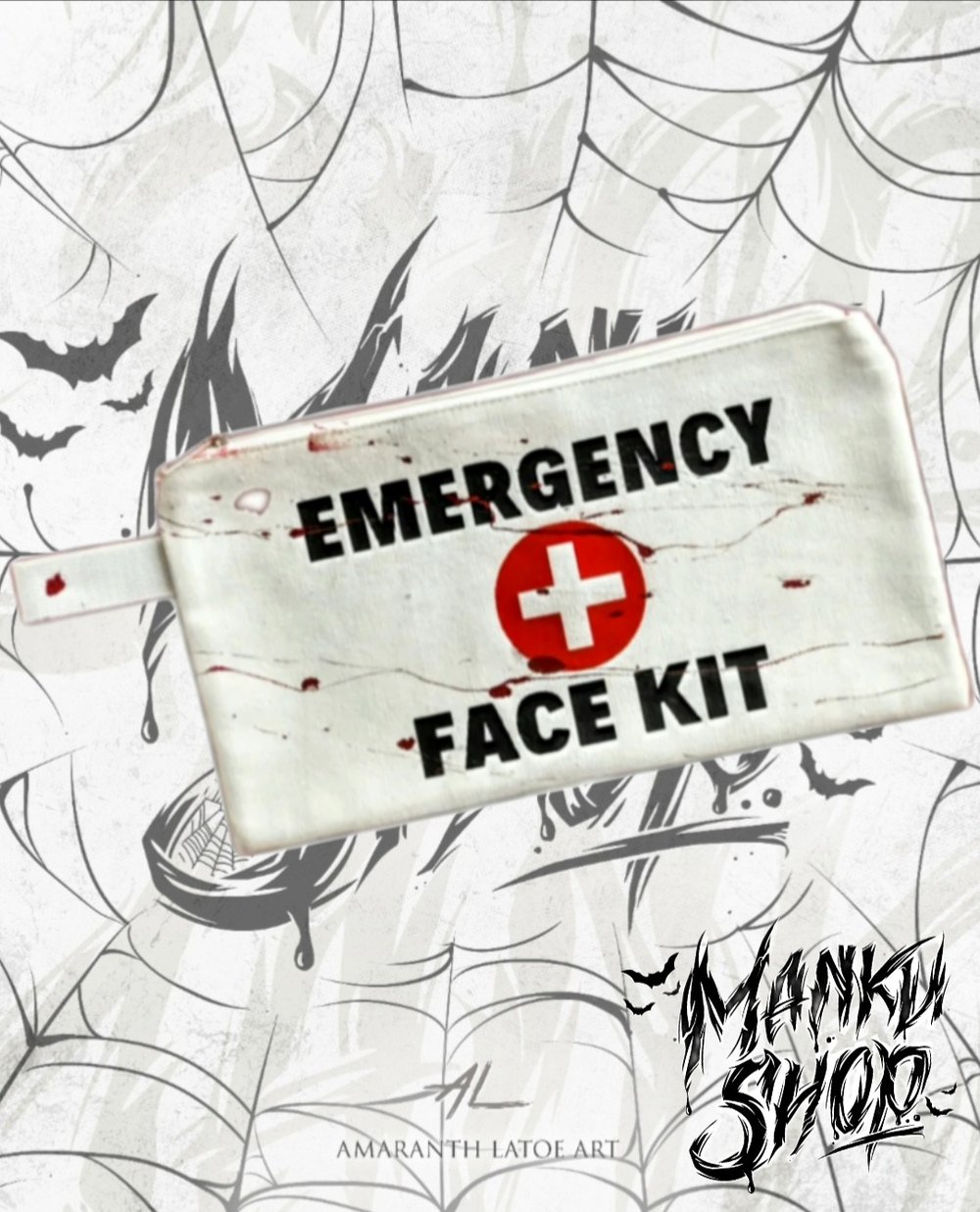 Emergency Face Kit Mean Makeup Bag design on tough cotton material with zipper on top and handle on the side. Can fit all your ghoulish necessities and more. Design is on both sides. Bag measures 12x7 in. They are machine wash safe but on the delicate setting, cold water, and turn it inside out. Also they need to hang dry, no tumble dryer. Please allow 5-7 business days for processing. Bags are made to order. Thank you