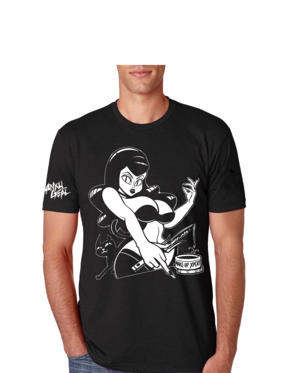 The Exper-tee on men’s black tee. Original artwork by artist Vicente Saldivar. Swipe for measurements. Comfortable and Breathable fabric.Machine Cold Wash/ No Bleach/ Hang Dry.