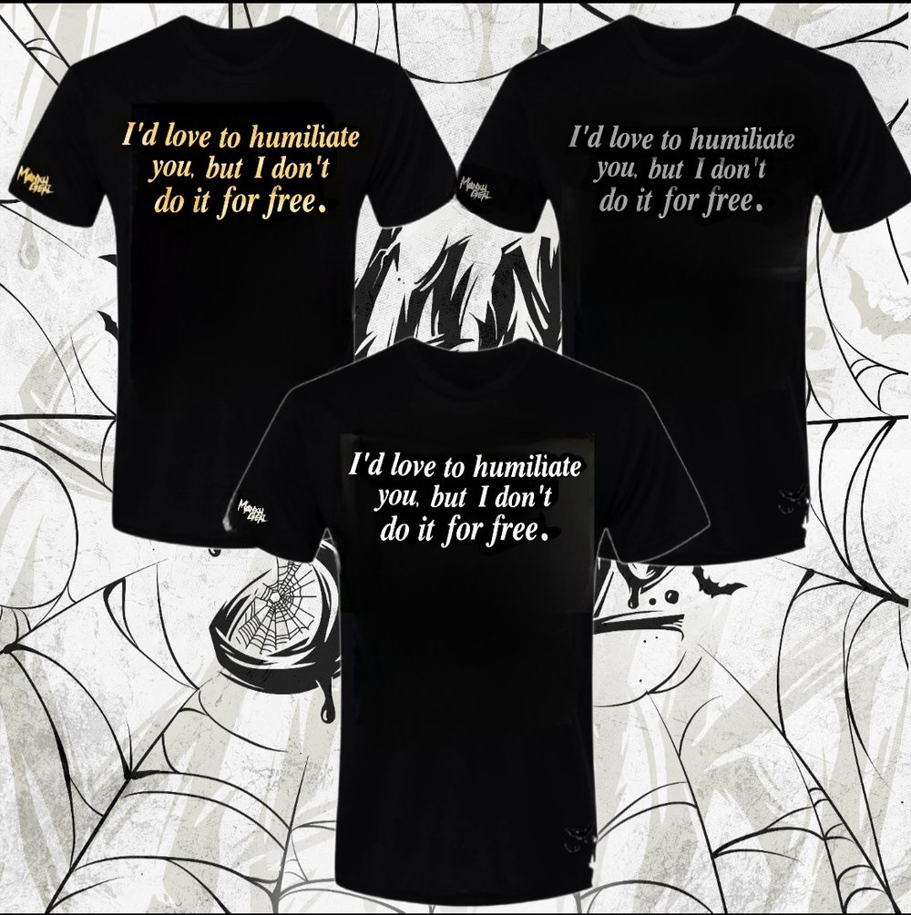 Humiliate Them design in white, gold, and silver on men’s black tee. Comfortable and Breathable fabric. Machine Cold Wash/ No Bleach/ Hang Dry.