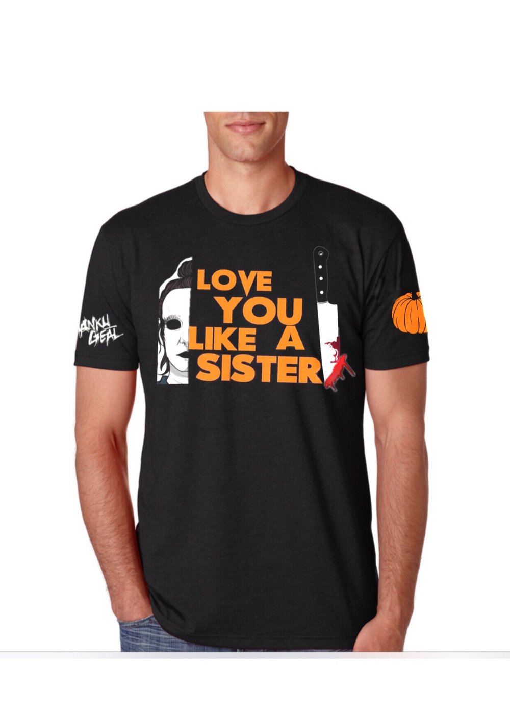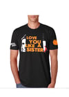 Love You Like A Sister on men’s black tee. Swipe for measurements. Comfortable and Breathable fabric.Machine Cold Wash/ No Bleach/ Hang Dry.