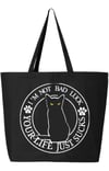 Lucky Kitty designon Heavy Duty Canvas Tote Bag, 12oz 100% Cotton Tote Bag, Black Grocery Bag 15 x 16 Inch.