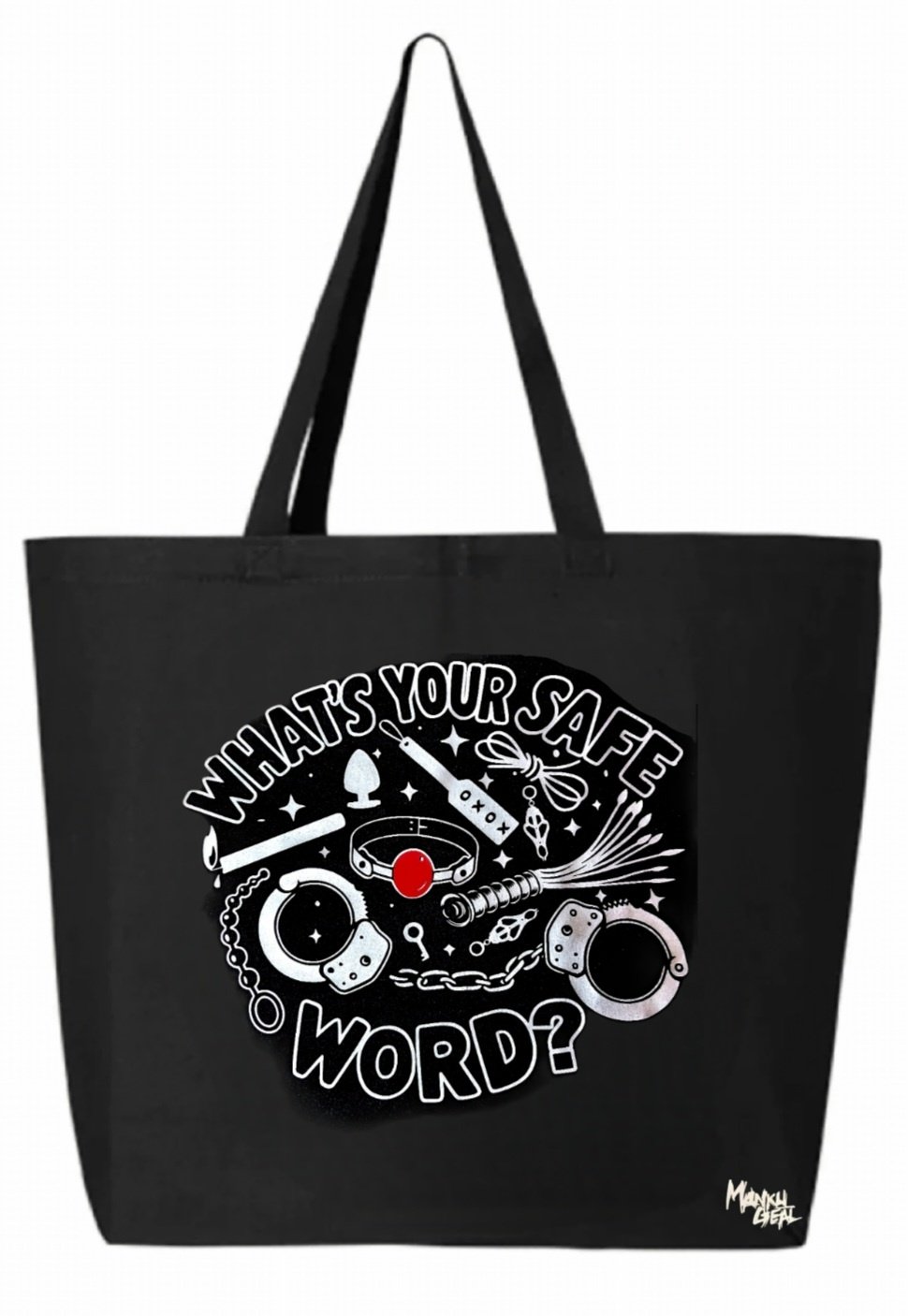Safe Word designon Heavy Duty Canvas Tote Bag, 12oz 100% Cotton Tote Bag, Black Grocery Bag 15 x 16 Inch.