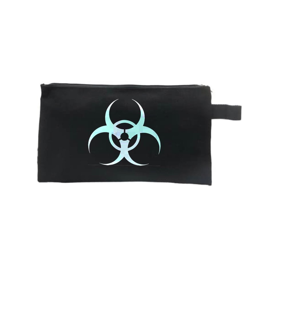 Toxic Mean Makeup Bag design on tough cotton material with zipper on top and handle on the side. Can fit all your ghoulish necessities and more. Design with words on one side and glow in the dark toxic symbol on the other side. Large Bag measures 12x7 in. Small bag measures 9x7 in. They are machine wash safe but on the delicate setting, cold water, and turn it inside out. Also they need to hang dry, no tumble dryer. Please allow 6-15 business days for processing. Bags are made to order. Thank you